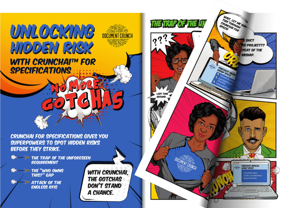 Every construction pro has battled the dreaded Gotchas—the hidden risks buried in 1,000+ pages of specs. They sneak up later as RFIs, delays, costly rework and disputes. That’s where Document Crunch steps in with a secret weapon: CrunchAI™ for Specifications.